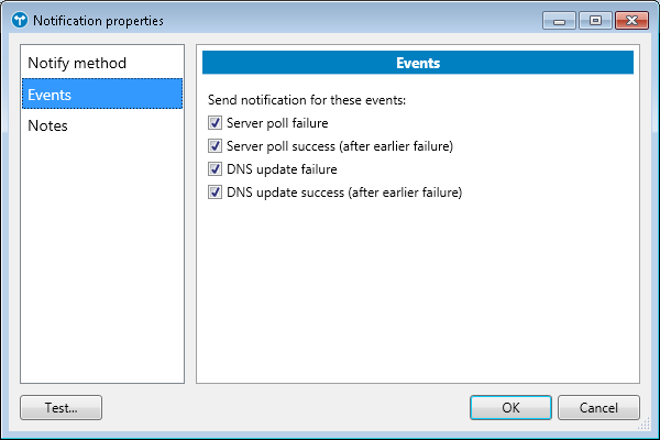 In this section of the Notification properties dialog, you specify which events to send the notification for: