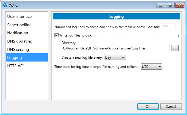 Where to write the log files. Click the "..." to browse for directory.Create a new log file every