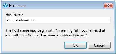 Clicking the Add or Edit buttons will open the "Host name" dialog: