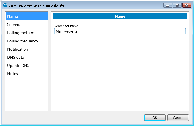 In this section of the Server set properties dialog, you can specify the name of the server set:
